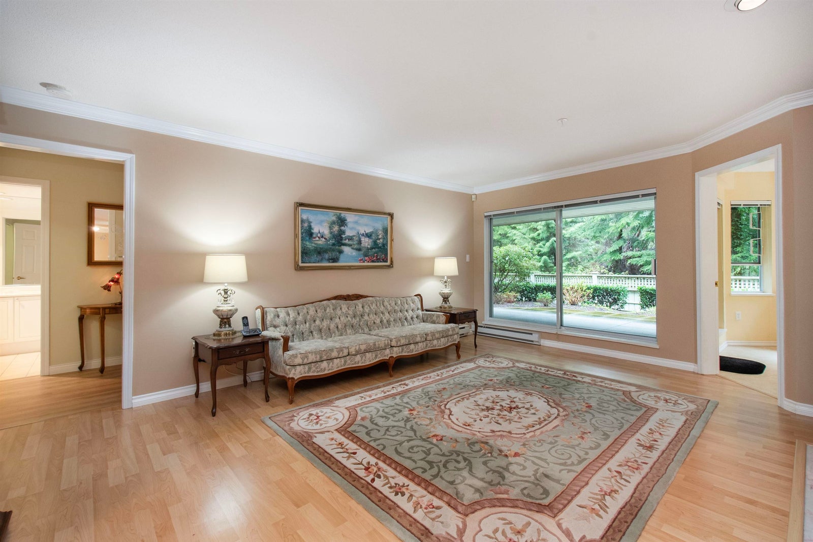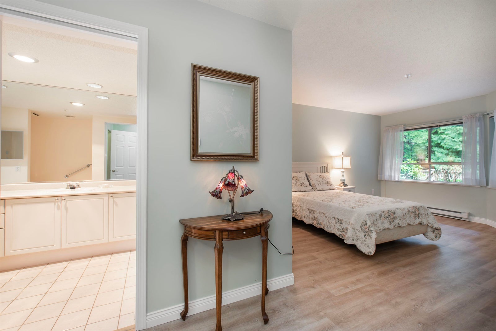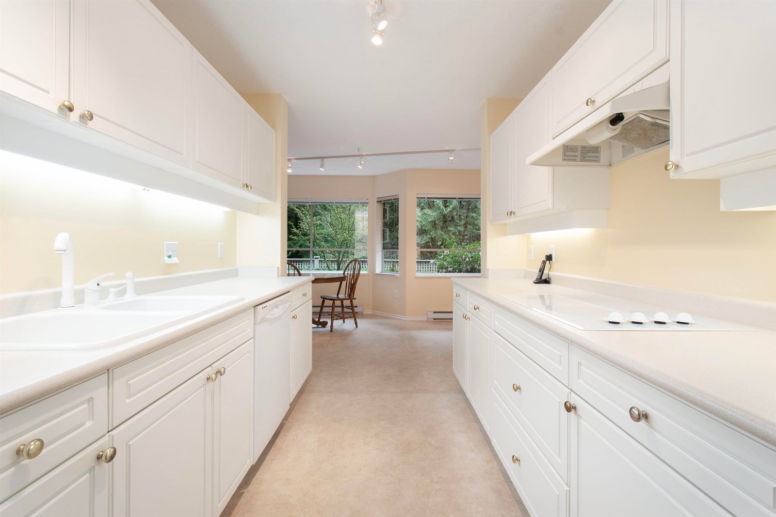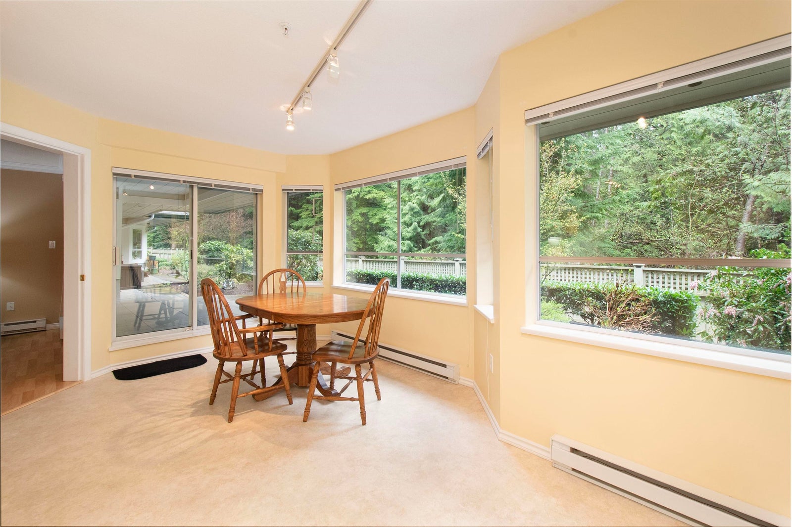 AMAZING House sized, garden level suite, perfect for downsizing or families with kids!!!! Two large bedrooms, 2 baths, and lots of space for house sized furniture. Formal dining room plus large eating area provide options for a home office or additional bedroom. Windows everywhere looking out on a fabulous patio and forest area. Enjoy the lovely outdoor spaces in the summer; the fireplace in the winter... and the pool and amenities all year round. Quiet and calm location BUT steps to the Parkgate Mall restaurants, coffee shops, groceries, library, and recreation centre. Parkgate Manor is a well-maintained complex so you can relax and enjoy your home.