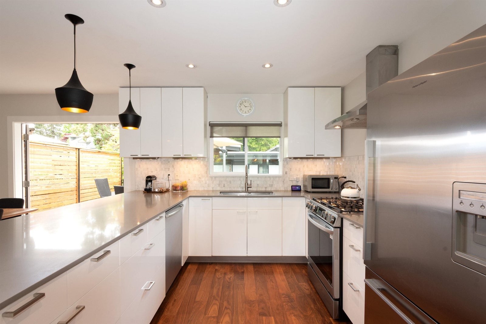 Spectacular location, spectacular home, spectacular family opportunity! If you have been looking for an amazing home in the perfect location WITH a great coach house to help with the mortgage, this is it! On a large, flat, sunny lot, this home has been renovated to the highest standards with gorgeous contemporary finishings and custom touches throughout. Perfect for families with kids: 3 beds/2 baths up with open plan living areas and a HUGE deck off the kitchen. The lower level offers 2 more beds plus full bath AND an office and family room OR convert back to a nanny suite and still have a large rec room and additional space for upstairs use. The yard is lovely and fully fenced for kids and pets! Very quiet street; walk to parks, schools, rec centre, Lonsdale shops and restaurants.