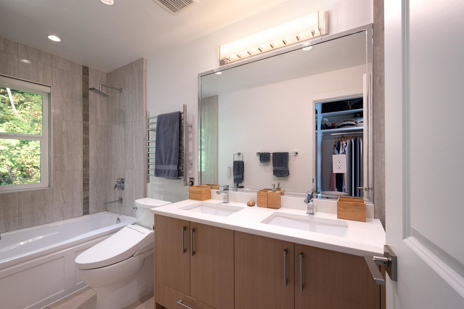 Amazing views; better than new house! Welcome to this spectacular top quality rebuilt home. Hidden up off the road, this home has ALL the extras. Drive up to your gated property and enjoy ocean/mountain views to the front; exclusive Quarry Rock trail access in back. Multi-level home w/ luxurious finishes and windows everywhere. High and bright open plan, w/ 3 bedrooms + den (4th bedroom?) up; suite and beautiful rec room down. Rare extras include A/C, auto blinds, smart lights/sound. Decks everywhere to enjoy the amazing sunny south facing outlook. Tons of parking; EV charger; workshop; lots of storage. Don't like stairs? Get out of your car and hop into the elevator. So many extras; too many to list. Walk to shops, restaurants, schools. | Open: Sat, Oct 18, 2025 - 03:00 PM - 04:00.