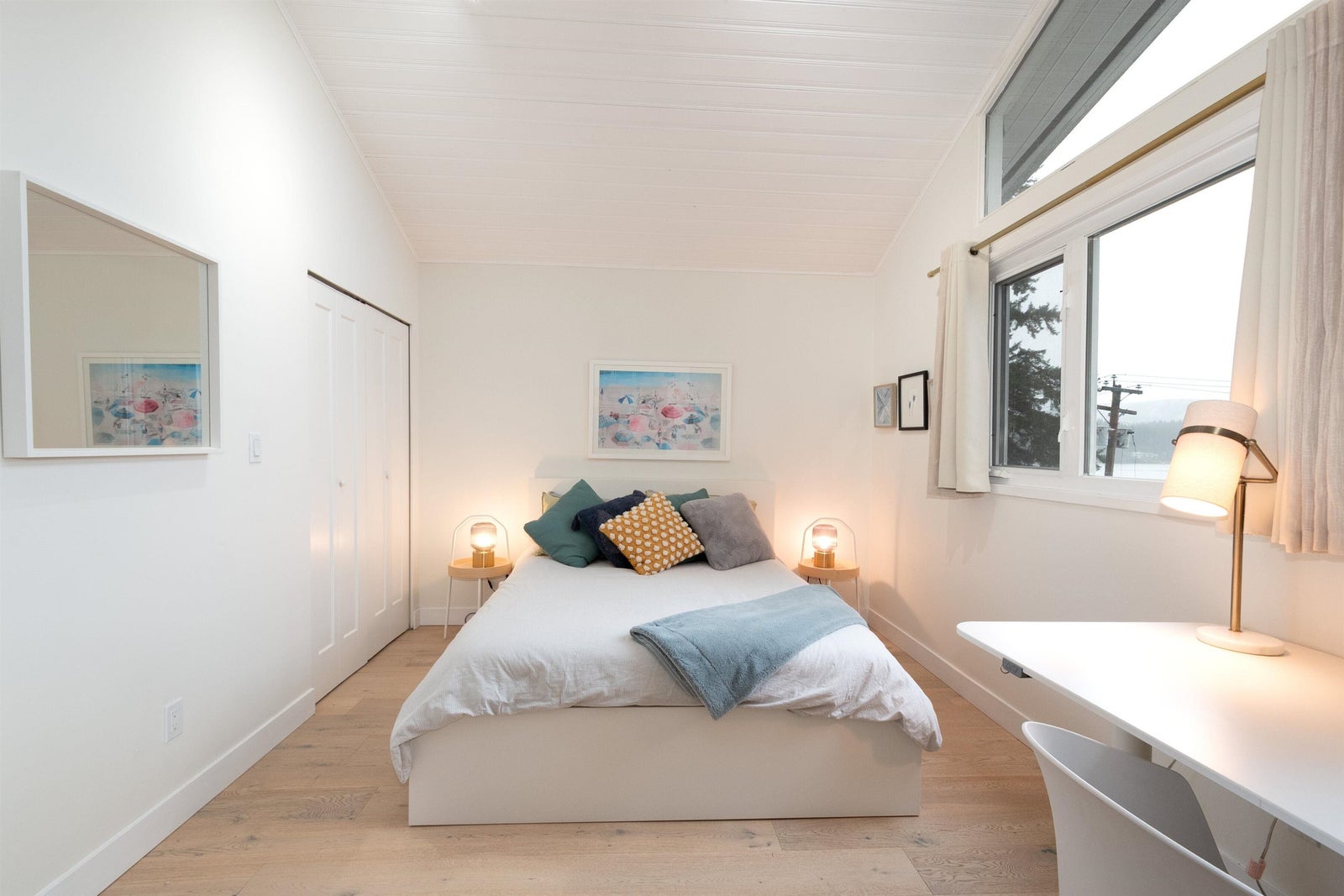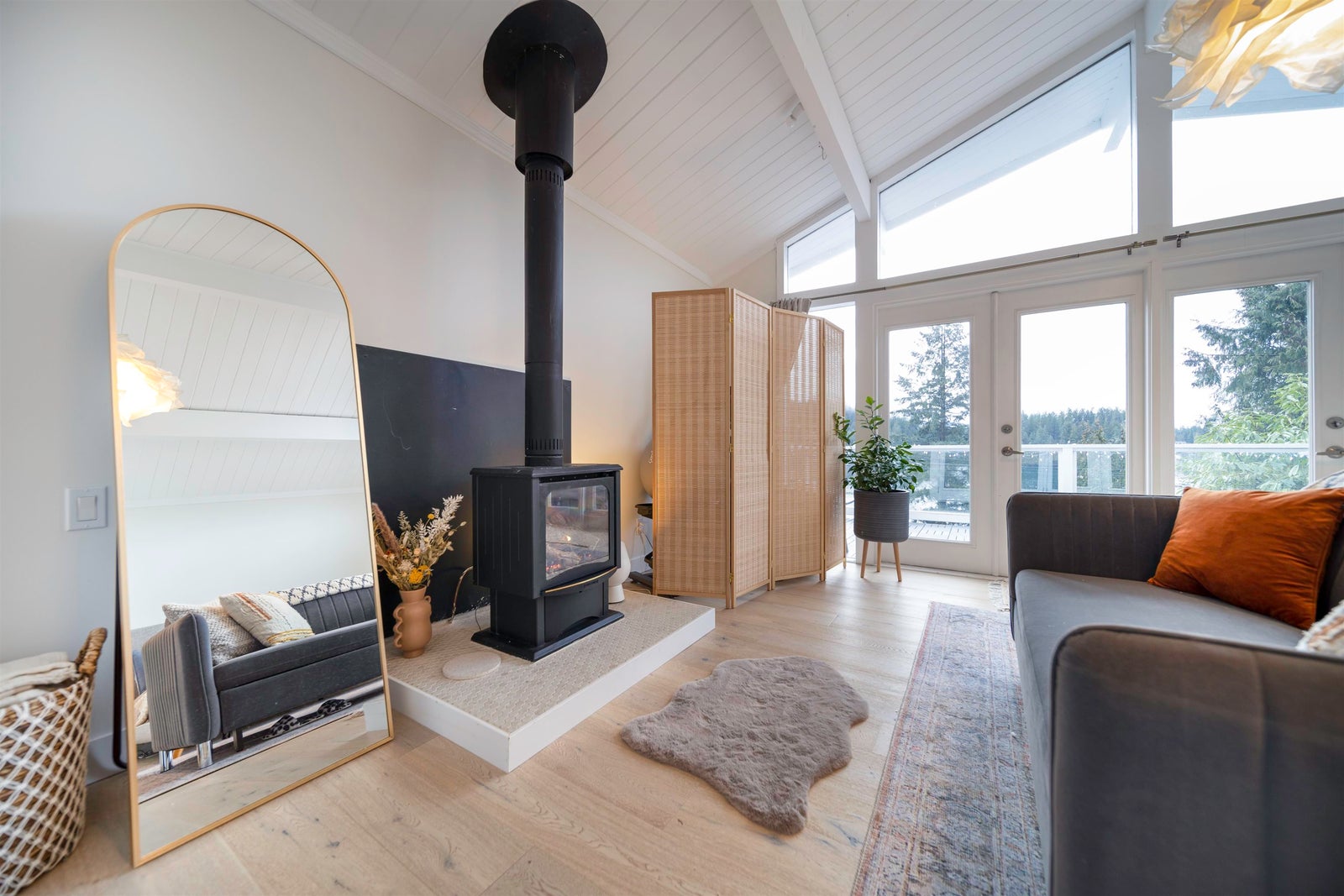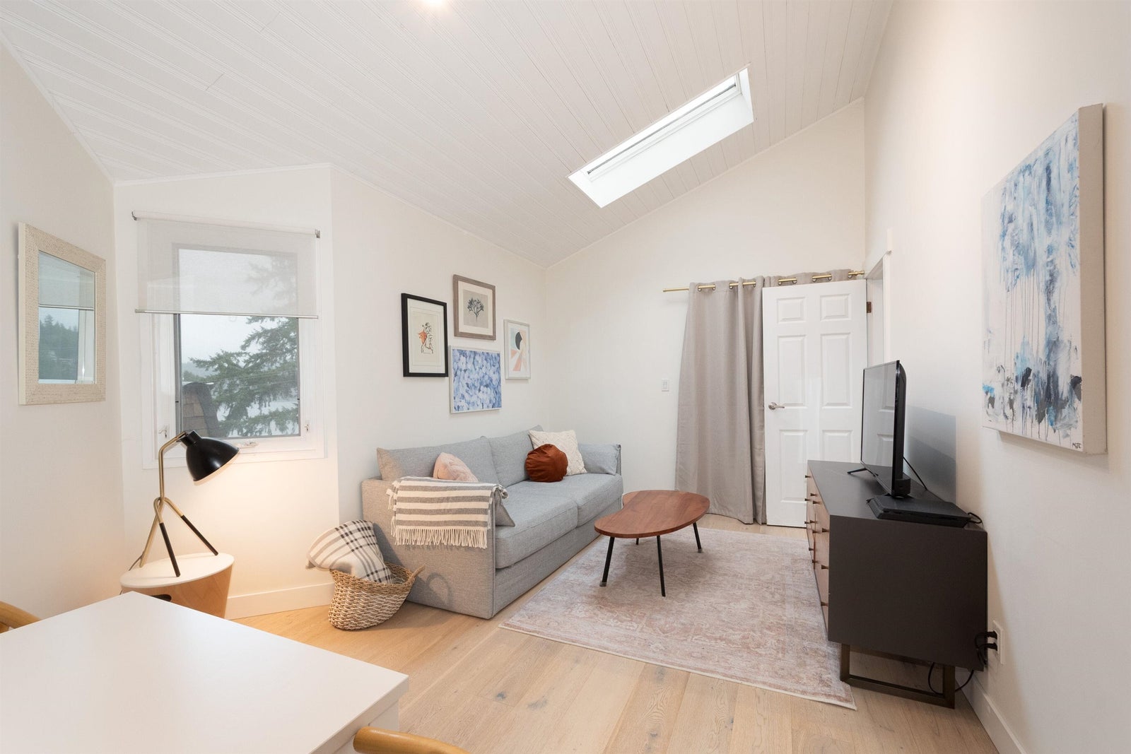 bright with soaring vaulted ceilings, skylights, and two cozy