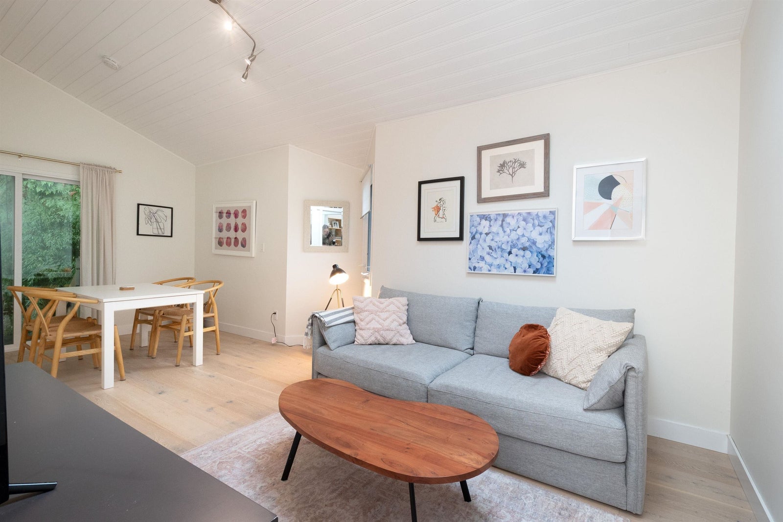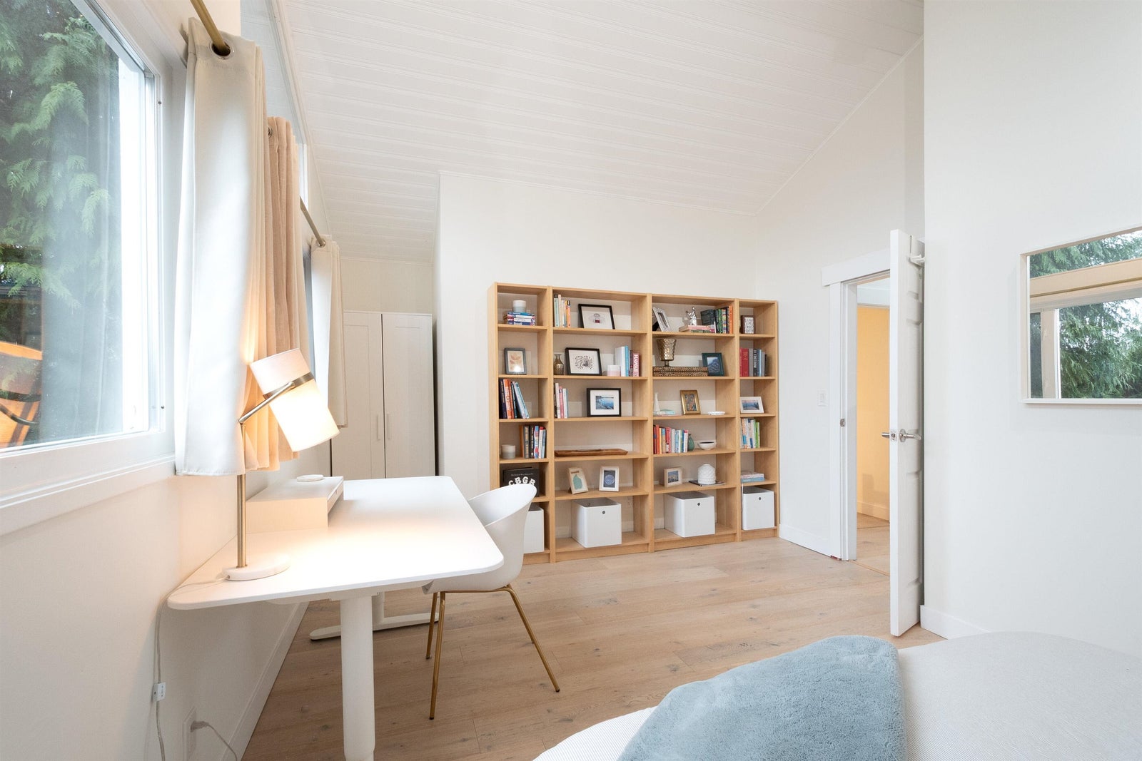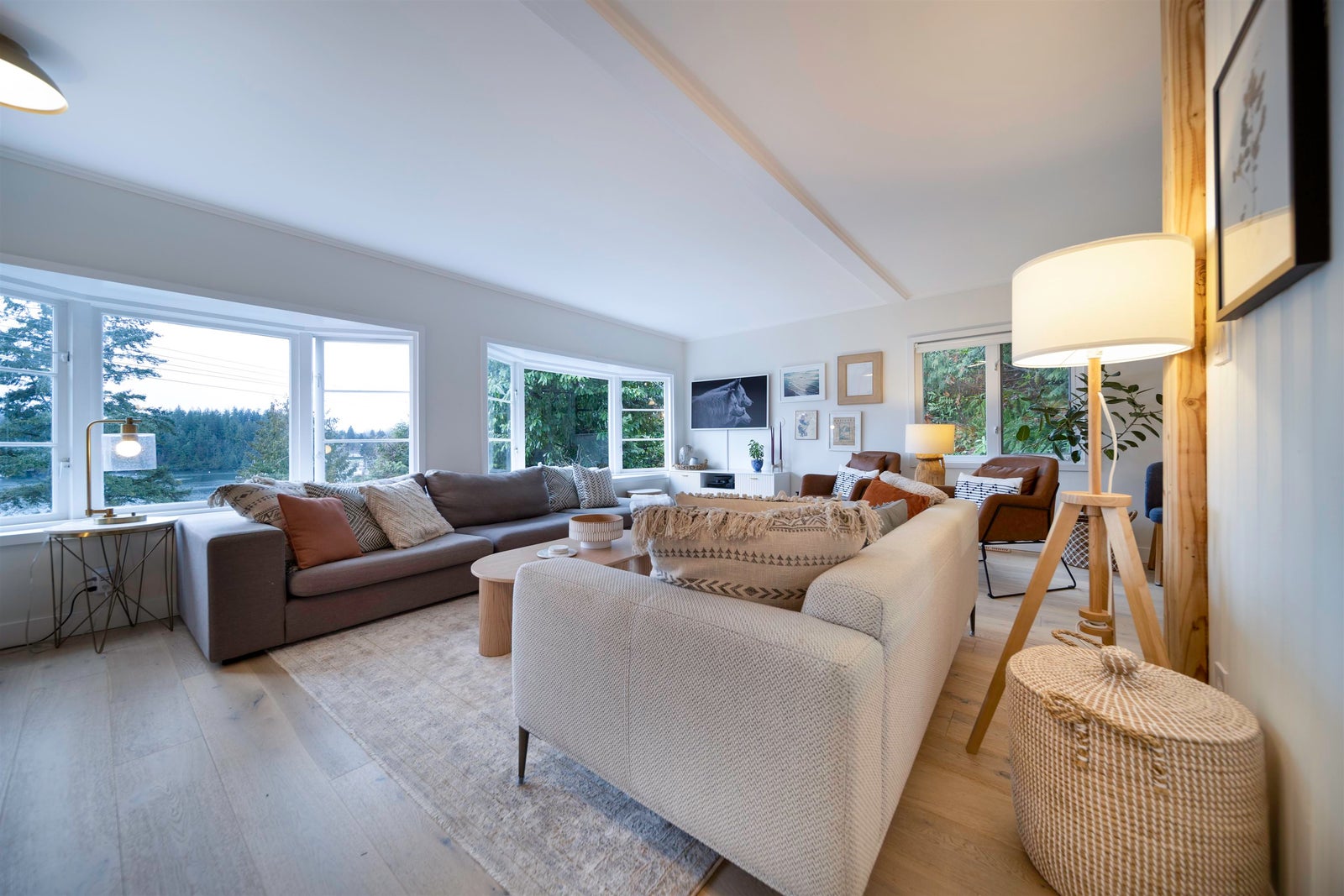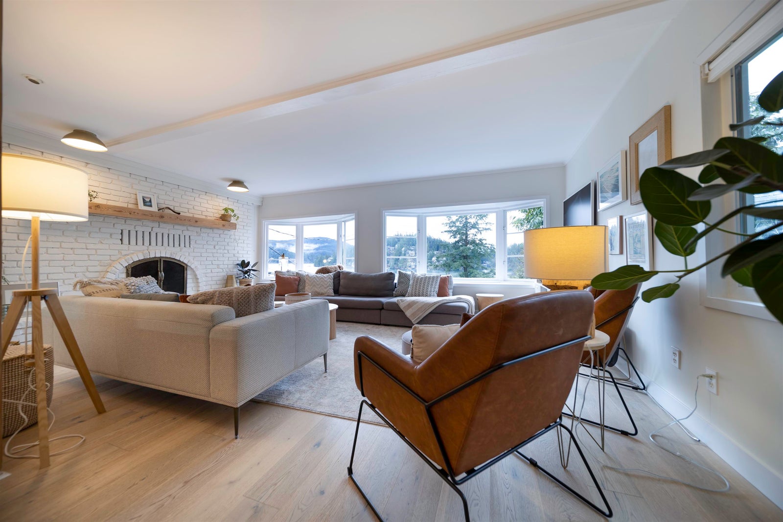 bright with soaring vaulted ceilings, skylights, and two cozy