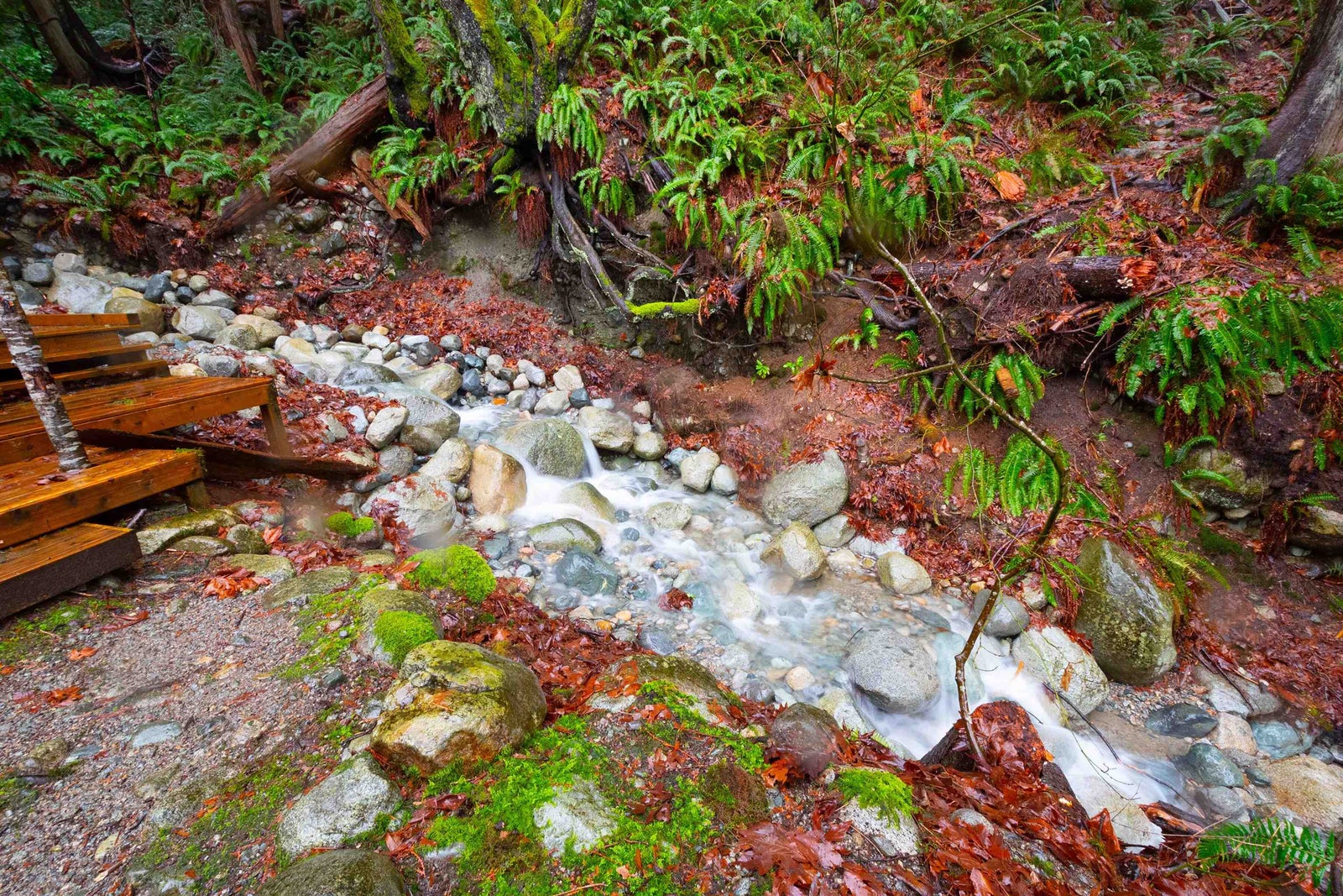 custom wellness garden with hot tub and outdoor shower (and stream!)