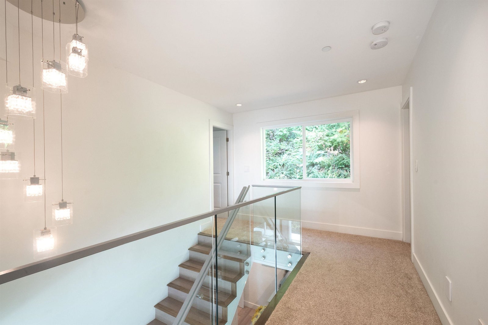 Amazing views; better than new house! Welcome to this spectacular top quality rebuilt home. Hidden up off the road, this home has ALL the extras. Drive up to your gated property and enjoy ocean/mountain views to the front; exclusive Quarry Rock trail access in back. Multi-level home w/ luxurious finishes and windows everywhere. High and bright open plan, w/ 3 bedrooms + den (4th bedroom?) up; suite and beautiful rec room down. Rare extras include A/C, auto blinds, smart lights/sound. Decks everywhere to enjoy the amazing sunny south facing outlook. Tons of parking; EV charger; workshop; lots of storage. Don't like stairs? Get out of your car and hop into the elevator. So many extras; too many to list. Walk to shops, restaurants, schools.