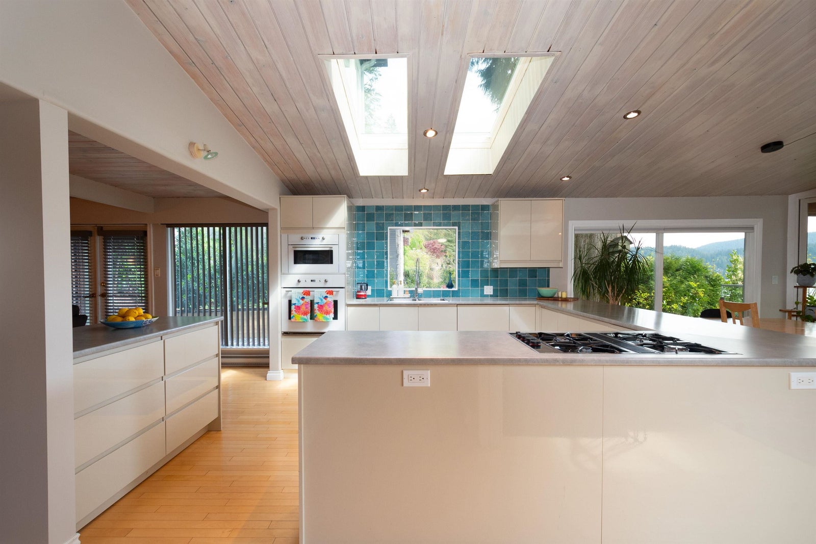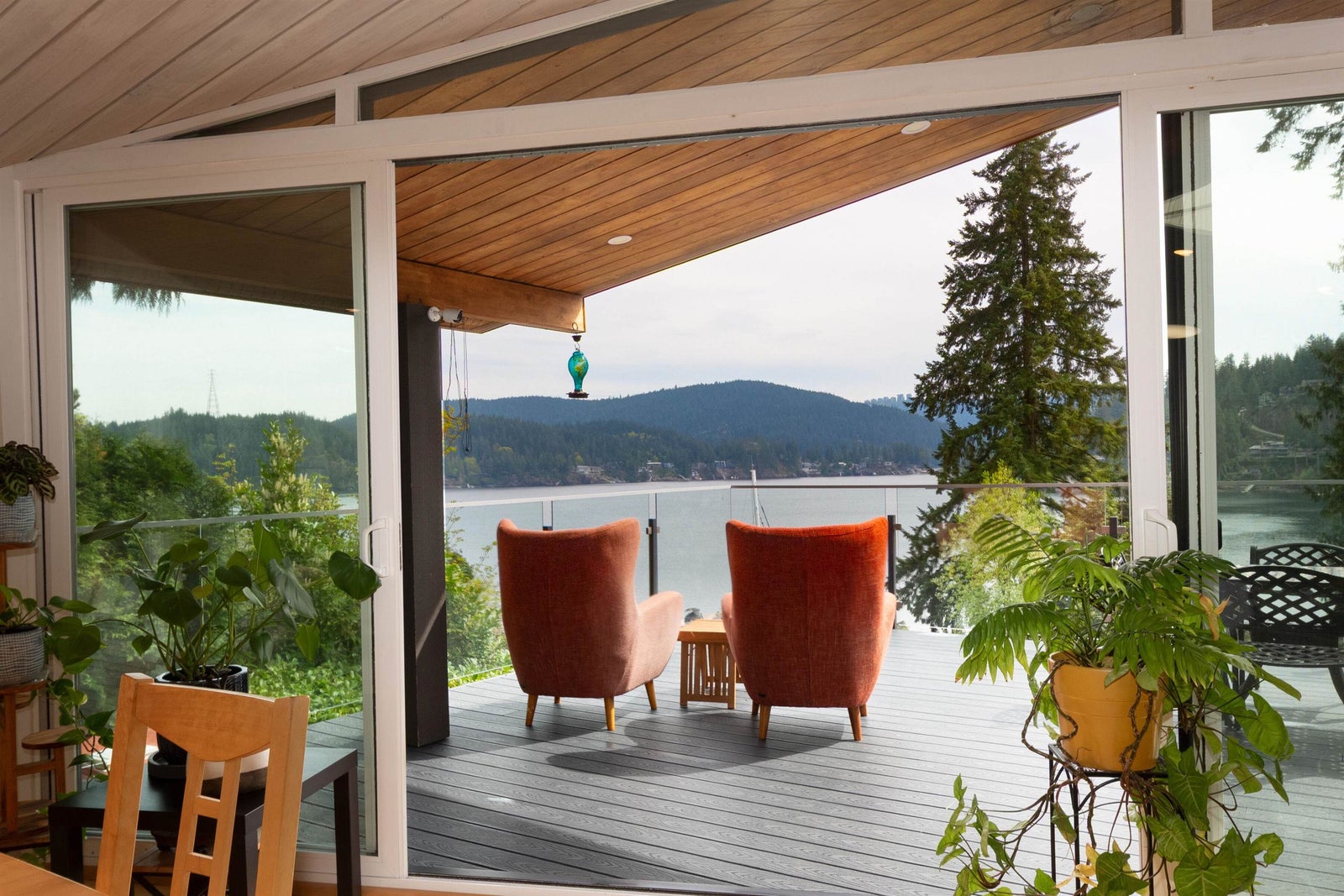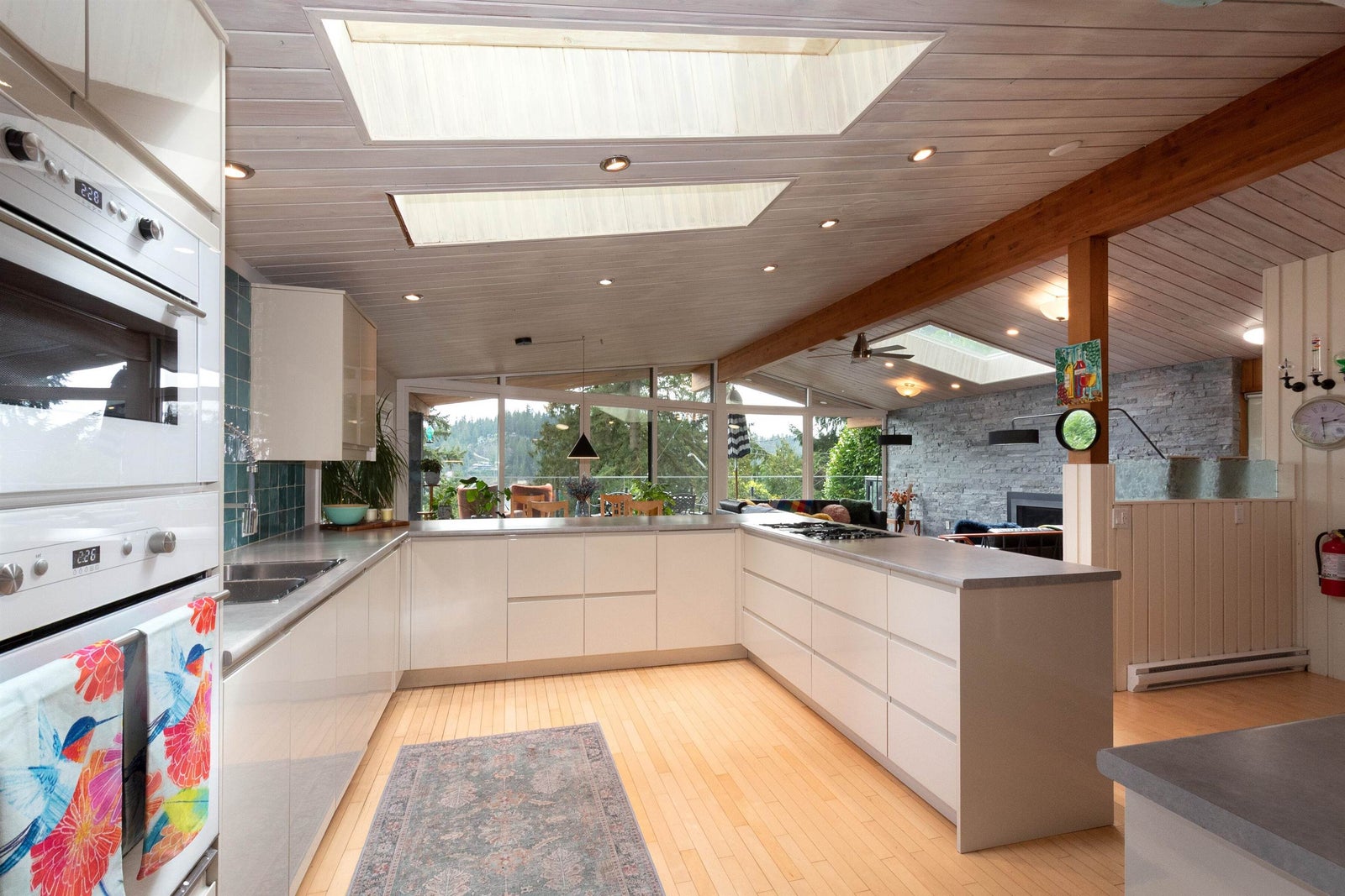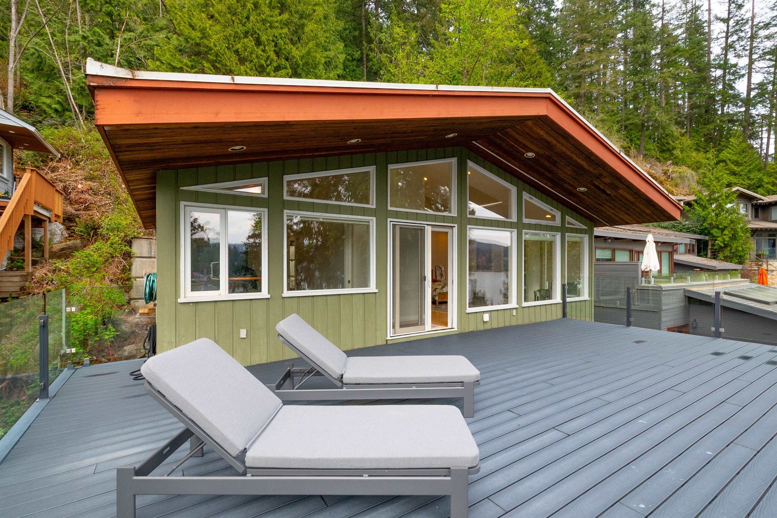 Amazing OCEAN AND MOUNTAIN views from above the Cove! Gorgeous high up ocean and mountain views from this super cool mid century West Coast Contemporary. This house is over 3500 square feet, featuring 5 bedrooms and a den (which could be a sixth bedroom), 5 bathrooms, great living spaces and TONS of storage AND parking. Amazing outdoor spaces allow you to take advantage of all of the sun and views. Cross the street to the ocean and marina or step out back and up into the forest to connect to the Baden Powell Trail/Quarry Rock. In the heart of the Cove but hidden and quiet! Open House: 12:30 PM - 02:00 PM, Saturday, April 25, 2026.